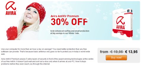 As you probably noticed already if you ever used Avira AntiVir Personal every time the antivirus updates its database it also displays a window with some information regarding the benefits of the paid version. It's not annoying at all and sometimes it comes with really interesting information as it keeps happening in the last few days - Avira AntiVir Premium is available for a really good price - 1395 EUR (~18.35 USD) 30% off from a previous price of 1995 EUR. Sweet!